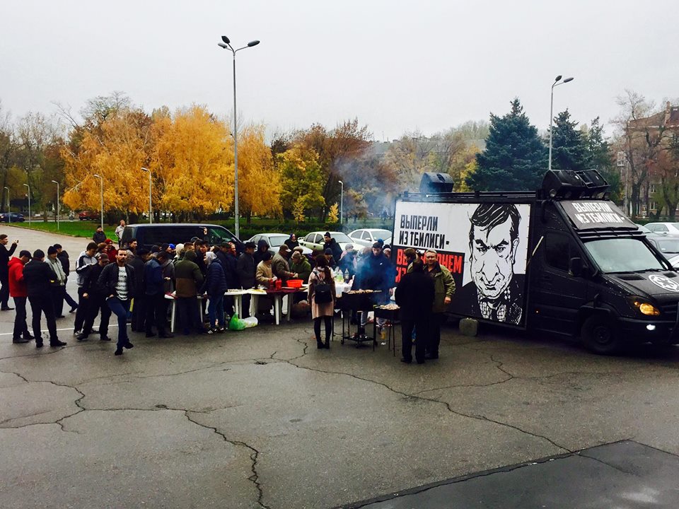 Под стенами Одесской ОГА противники губернатора Одесской области Михеила Саакашвили устроили акцию по раздаче бесплатной еды и напитков в честь его отставки. Параллельно проходит сбор подписей.