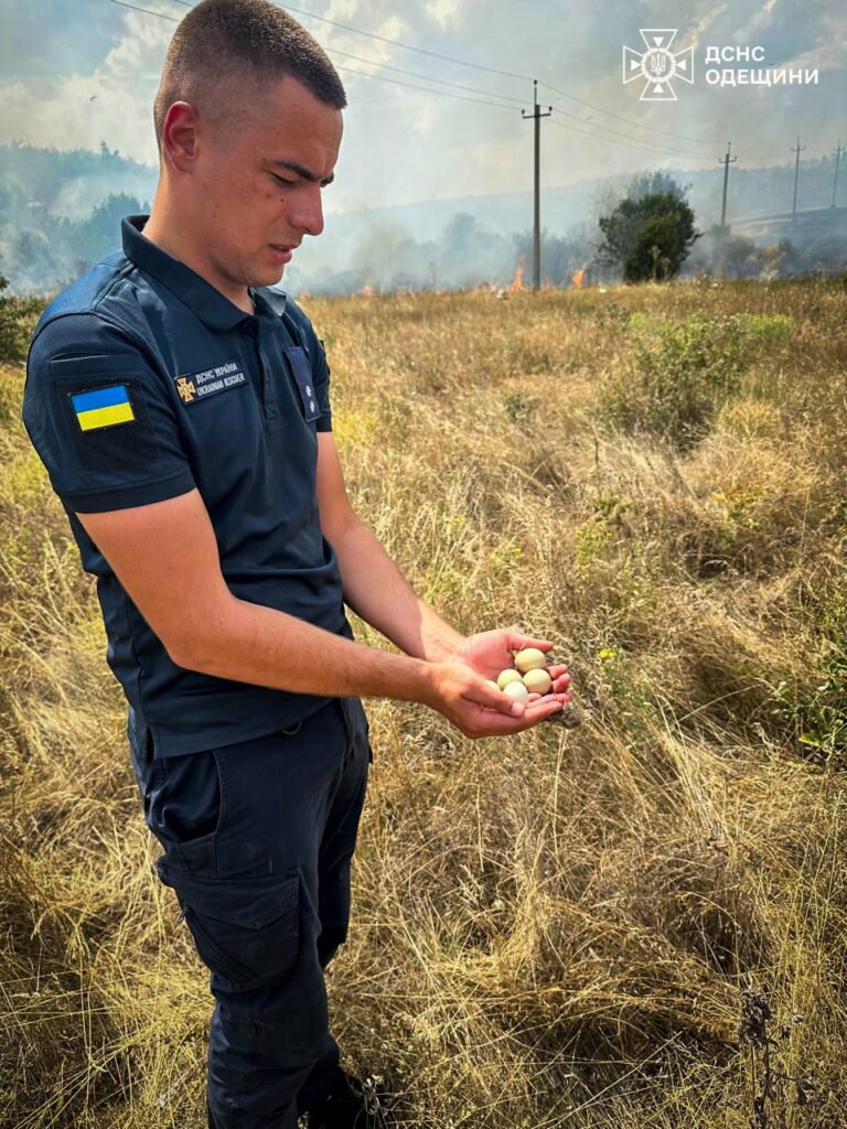 Птахи, рятуючись від полум’я, ніяк не могли забрати їх із собою. Рятувальник обережно переніс гнізда з яйцями у безпечне місце, щоб дати цим майбутнім пташенятам шанс на життя. Цей випадок нагадує нам про дві реальності: одні люди руйнують природу, навмисно чи через байдужість, спалюючи землю, а інші – щодня борються за кожне життя, – зазначає Головне управління ДСНС України в Одеській області