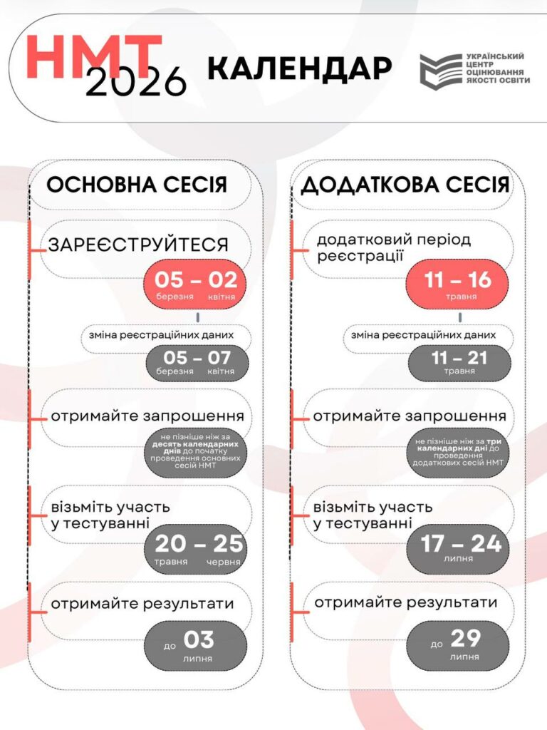 Інформацію про результати основної сесії НМТ-2026 за шкалою 100–200 балів буде розміщено в персональних кабінетах учасників до 3 липня, додаткової – до 29 липня.