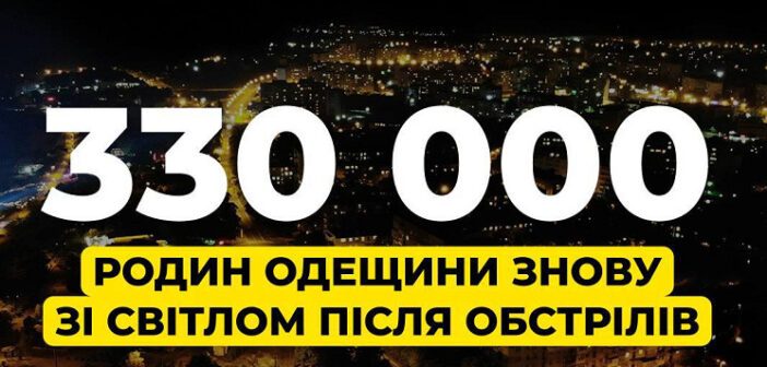 Без світла залишається 288 тисяч родин області. Енергетики працюють в посиленому режимі, щоб повністю ліквідувати наслідки атаки.