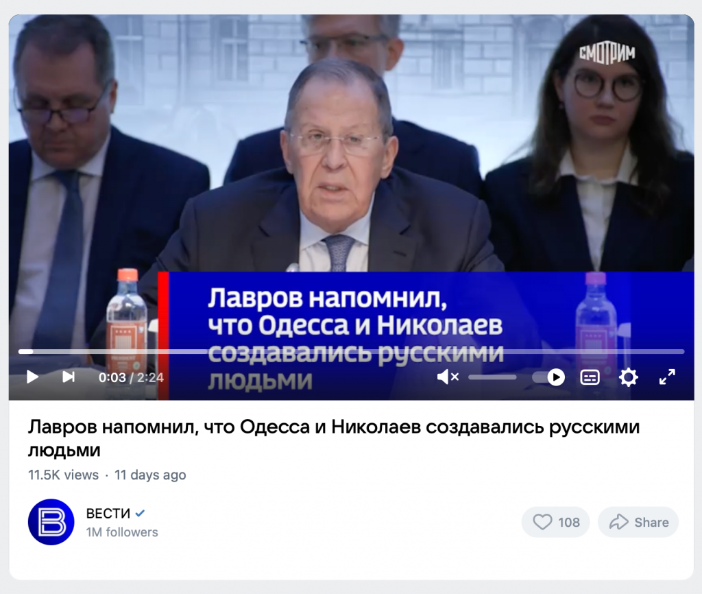 У Кремлі продовжують використовувати історію, щоб просувати свою картину світу, спотворюючи при цьому минуле та реальні факти. Цього разу очільник МЗС РФ Сергій Лавров заявив, що і Одеса, і Миколаїв «створювалися російськими людьми». Такими історичними фейками Росія намагається спотворити реальну історію та вплинути на жителів південних регіонів України, вказуючи, що це «виключно російські території».