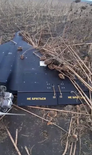 “Дебелий. Метра три в довжину і метра три в ширину”, — каже чоловік у ролику. На безпілотнику чорного кольору видно написи російською “не братись” на крилах.