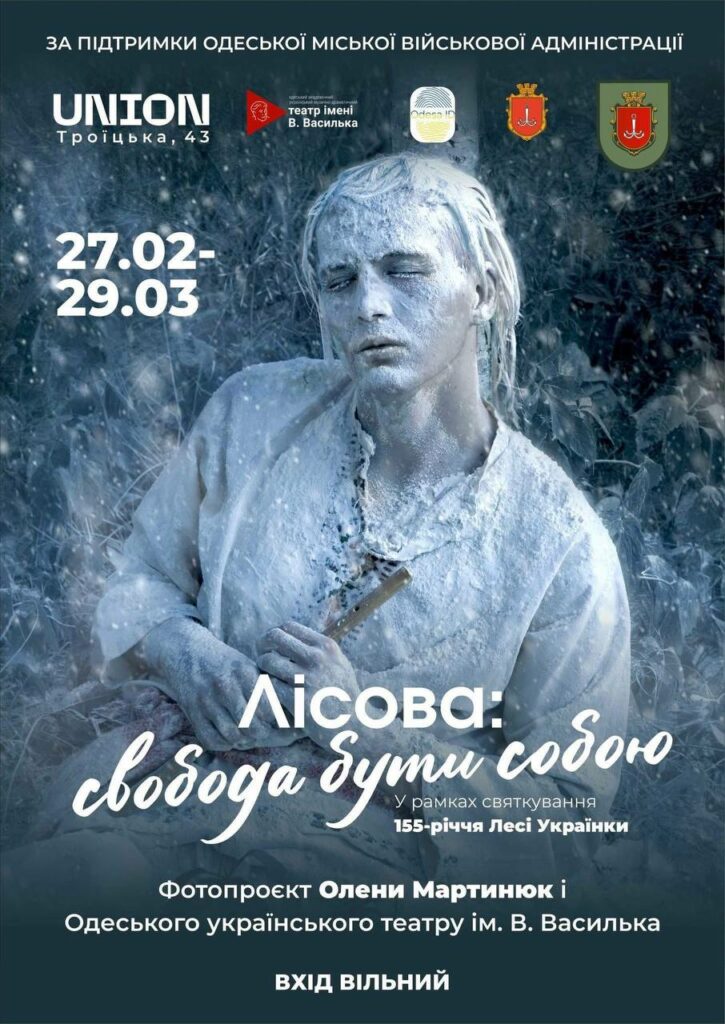 В рамках проєкту Odesa ID до 155-річчя від дня народження Лесі Українки відбудеться презентація фотопроєкту Олени Мартинюк та Одеського українського театру ім. В. Василька “Лісова: свобода бути собою”. Запрошуємо відвідати виставку з 27 лютого по 29 березня в Міжнародному культурному центрі UNION (вул. Троїцька, 43). Вхід вільний.