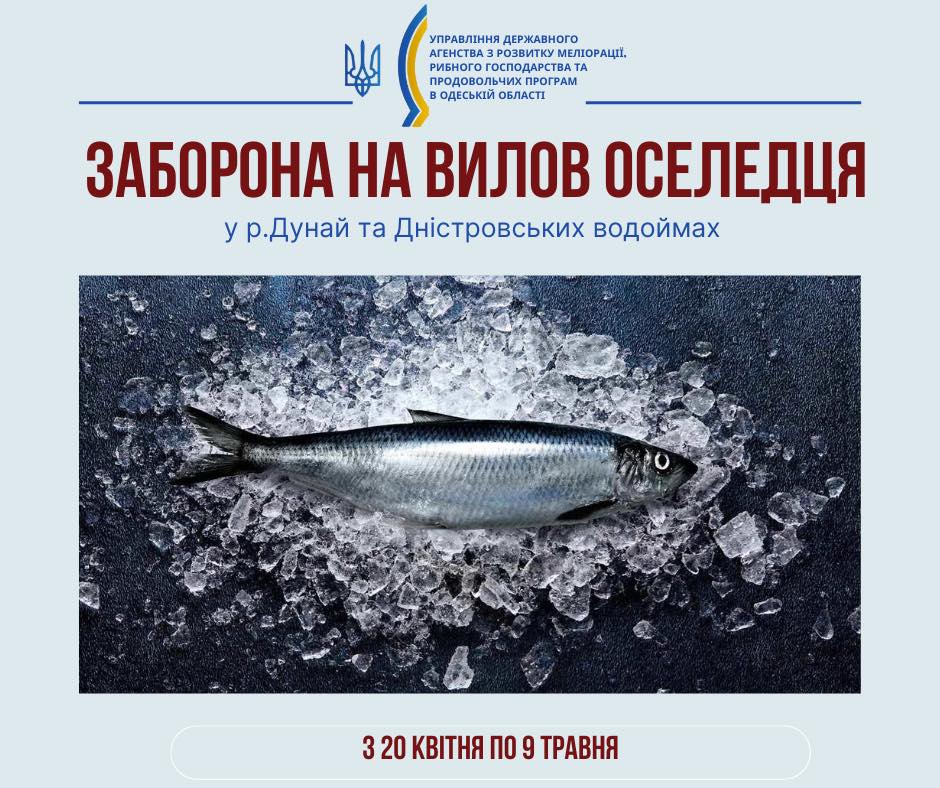 У період з 20 квітня по 9 травня 2025 року встановлено заборону на промисловий вилов оселедця в окремих ділянках річок Дунай і Дністер, а також у Дністровському лимані та рукаві Турунчук. Про це повідомляє Одеський рибоохоронний патруль.