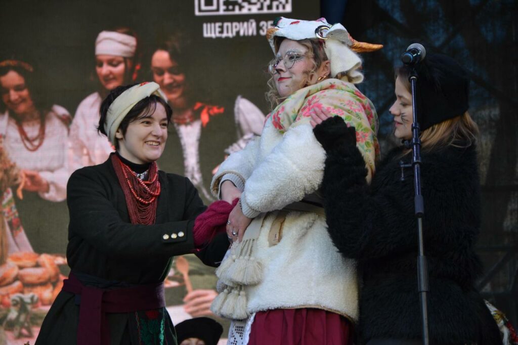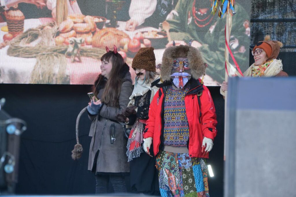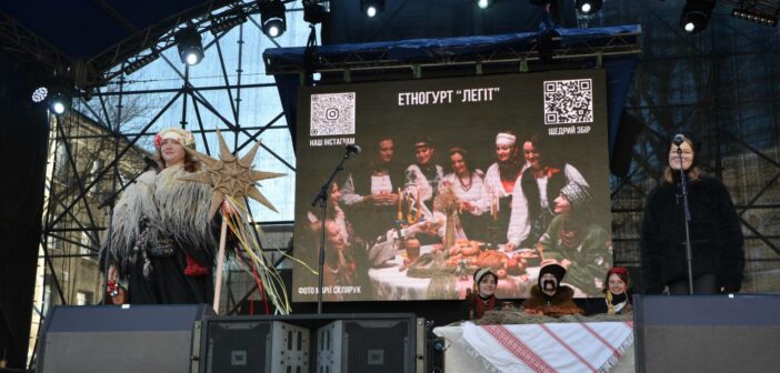 Сьогодні, 31 грудня, на Грецькій площі етногурт “Легіт” провів виставу про народні традиції України – святкування Різдва та Нового року. На сцені був показаний обряд водіння кози на Маланку, виконані щедрівки.