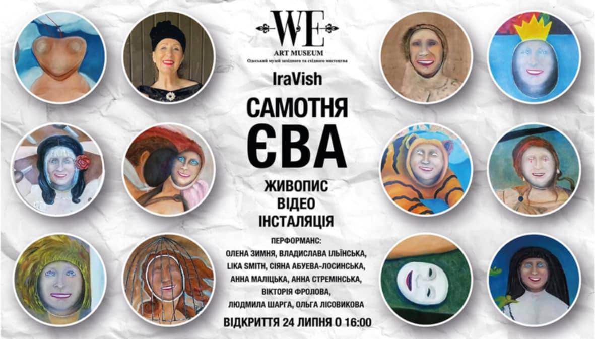 24 липня о 16.00 в Одеському Музеї Західного та Східного мистецтва відкриється виставка «Самотня Єва» художниці IraVish (Ірина Вишневська). Ця виставка – роздуми про кохання та самотність, про чужі ролі, які ми постійно граємо, про наше право бути такими, якими ми є.