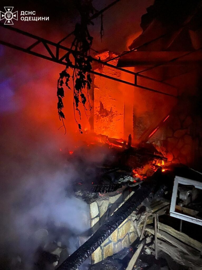 Вночі ворог вчергове атакував Одещину ударними безпілотниками. Внаслідок атаки в Одеському районі зруйновано житловий будинок площею 100 м.кв. з подальшим загоранням, рятувальники оперативно ліквідували пожежу.