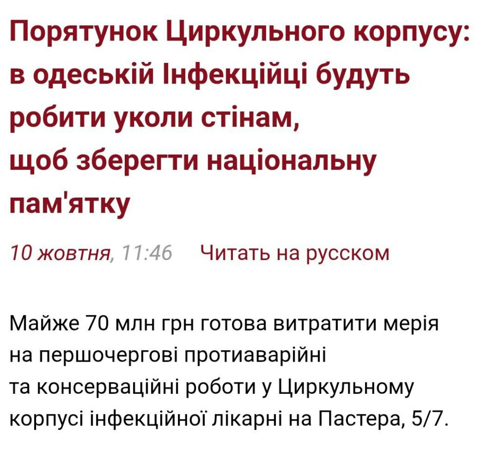 Третя новина «Порятунок Циркульного корпусу: в одеській Інфекційці будуть робити уколи стінам, щоб зберегти національну пам’ятку» використовує тривожні образи («порятунок», «уколи стінам»), але насправді йдеться про тендери, консервацію та попередні обстеження. Тут є багато подробиць, проте історичний контекст і технічні рішення випадають із заголовка. Тому читач отримує драму замість фактів про бюджет, строки й джерела фінансування. Наявні офіційні повідомлення міськради і тендерні дані дають реальні цифри і терміни і їх треба читати паралельно зі статтями.