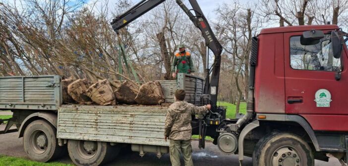 Озеленювачі КП «Міськзелентрест» продовжують роботи з висадження молодих дерев в Одесі. В п’ятницю комунальники висадили 40 великомірних саджанців софори в парку Перемоги. Про це повідомила пресслужба відомства.