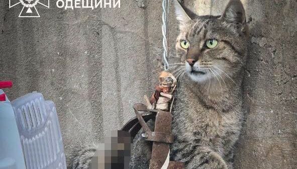 Сьогодні одеські вогнеборці врятували сірого красунчика із пастки – котик потрапив в справжній капкан. Про це повідомляє пресслужба Головного управління ДСНС України в Одеській області.