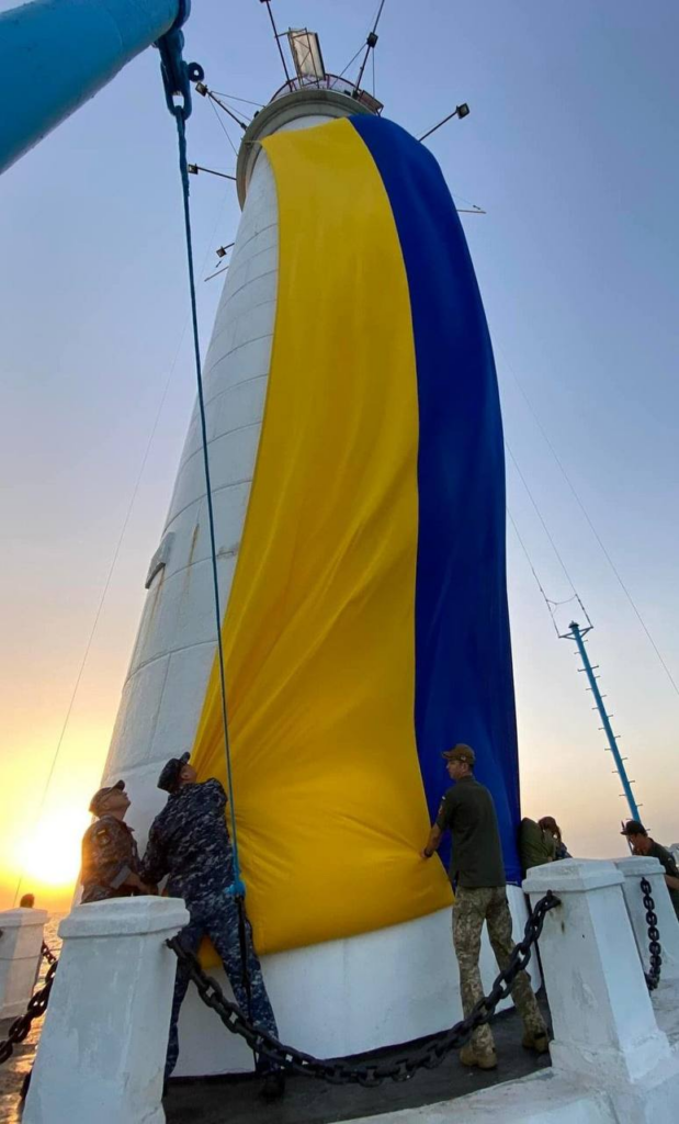 Одеса перша серед всіх міст підняла синьо-жовтий стяг, який розташували о 6 ранку під час сходу сонця на Воронцовському маяку – візитівці міста. Довжина прапору склала 18 метрів, – передає тг-канал ОдесаОфіційно.