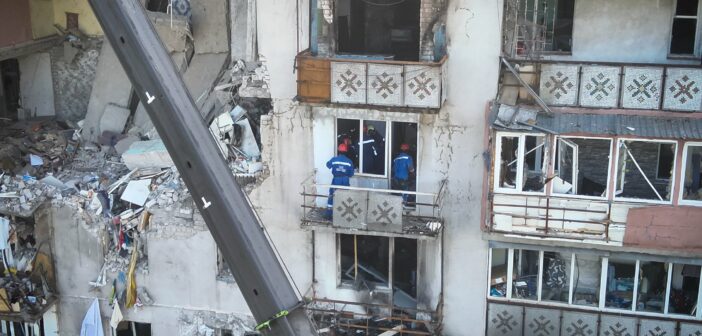 Наразі продовжуються роботи по демонтажу конструктивних елементів будинку.