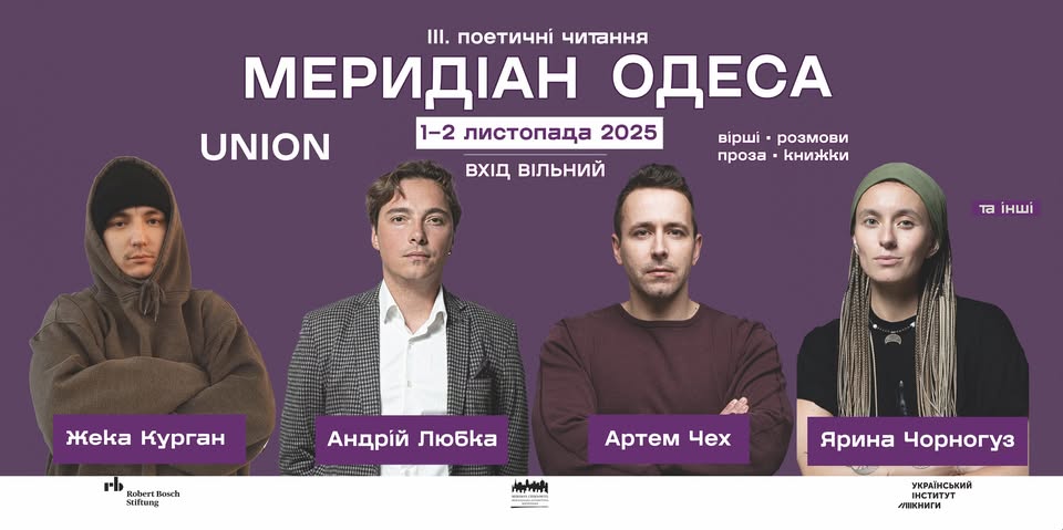 Проєкт “Поетичні читання Меридіан Одеса 2025” реалізується за підтримки Фонду імені Роберта Боша та Українського інституту книги. На локації працюватиме книжкова крамниця з новинками та автограф-сесіями.