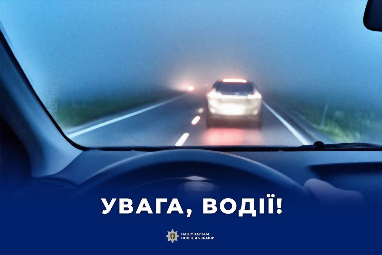 У зв’язку з можливим погіршенням погодних умов, у тому числі посиленням туману, закликаємо бути максимально уважними та обережними під час руху на дорозі. Погана видимість збільшує ризик дорожньо-транспортних пригод. Уникнути аварій на дорозі допоможе посилена пильність та обережність як водіїв, так і пішоходів.