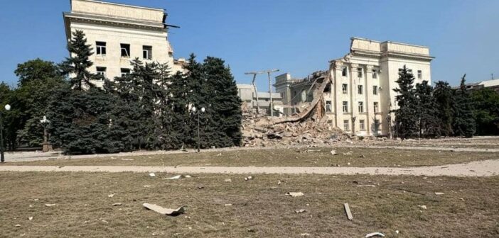 Сьогодні російські військові вдруге за день завдали удару по будівлі Херсонської обласної військової адміністрації. Про це повідомляють місцеві жителі, передає видання МОСТ.