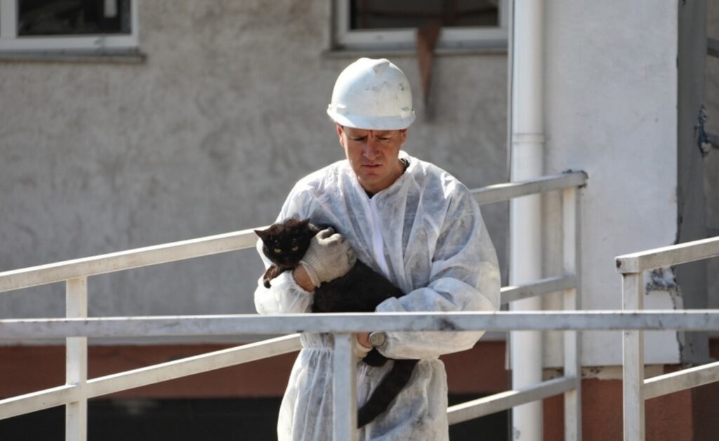 Із четвертого поверху з-під завалів фахівці ДСНС дістали живого котика. Рятувальники зазначають, що це справжнє диво, адже від квартири фактично нічого не залишилось.