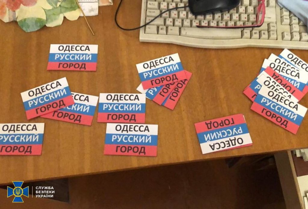 Проведя обыски у пророссийских активистов, сотрудники СБУ обнаружили газету “Новороссия”, наклейки с надписями “Одесса – русский город” и “Одесса – Новороссия”, а также другую печатную продукцию и тоталитарную символику.