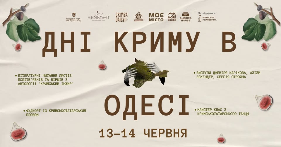Всіх бажаючих запрошують на “Дні Криму в Одесі “, які відбудуться впродовж 13–14 червня. Два дні — щоб бути разом і з Кримом, щоб говорити, чути, танцювати, згадувати, мріяти про повернення.