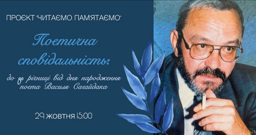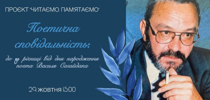 Розповідати про поета буде літературознавиця Ірина Нечиталюк. Запрошуємо всіх охочих згадати Василя Сагайдака, почитати його поезії, послухати спогади сучасників