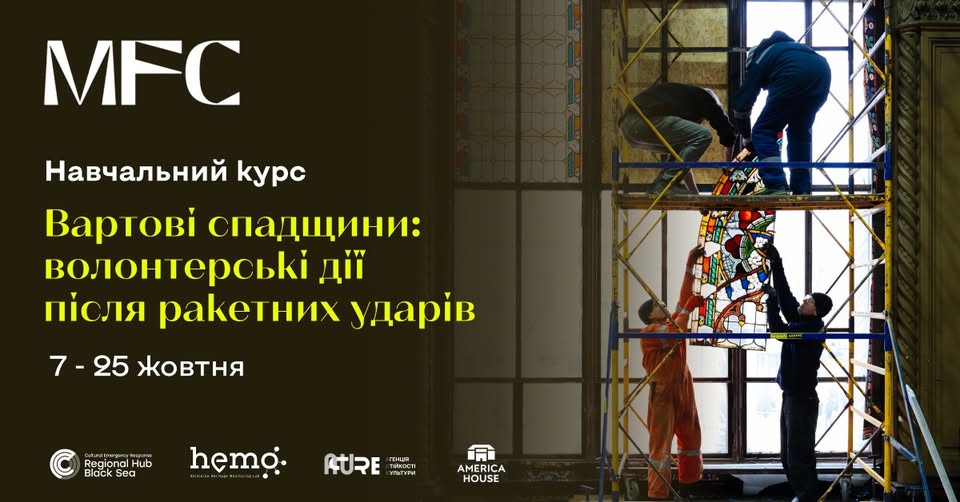 Коли руйнують культуру, головне — не розгубитися. Важливо знати, що і як робити, аби врятувати безцінне. Саме тому ГО Museum for change запускає тренінг «Вартові спадщини: волонтерські дії після ракетних ударів». Програма поєднає онлайн-сесії та офлайн-практику, аби сформувати мобільну групу людей, які будуть знати, як правильно діяти у випадку пошкодження культурних об’єктів та як долучитися до їхнього порятунку.