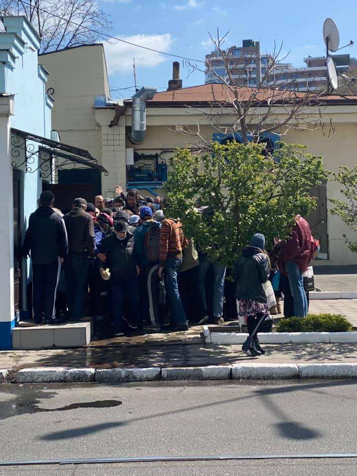 Возле столовой для малоимущих, что при храме на улице Леонтовича образовалась толкучка и очередь за пасхальными куличами. Фотографиями поделилась одесситка Наталья Эртнова на Facebook-своей странице.