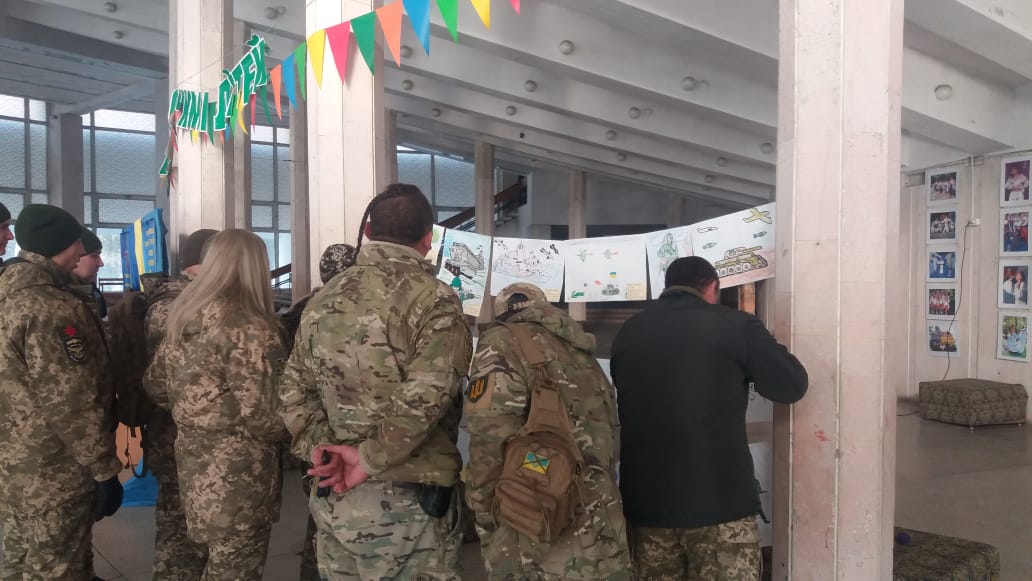 Крім виставки військової техніки та святкового концерту тут провели конкурс дитячого малюнку патріотичної тематики. Кращі роботи буде відправлено захисникам України на фронт.