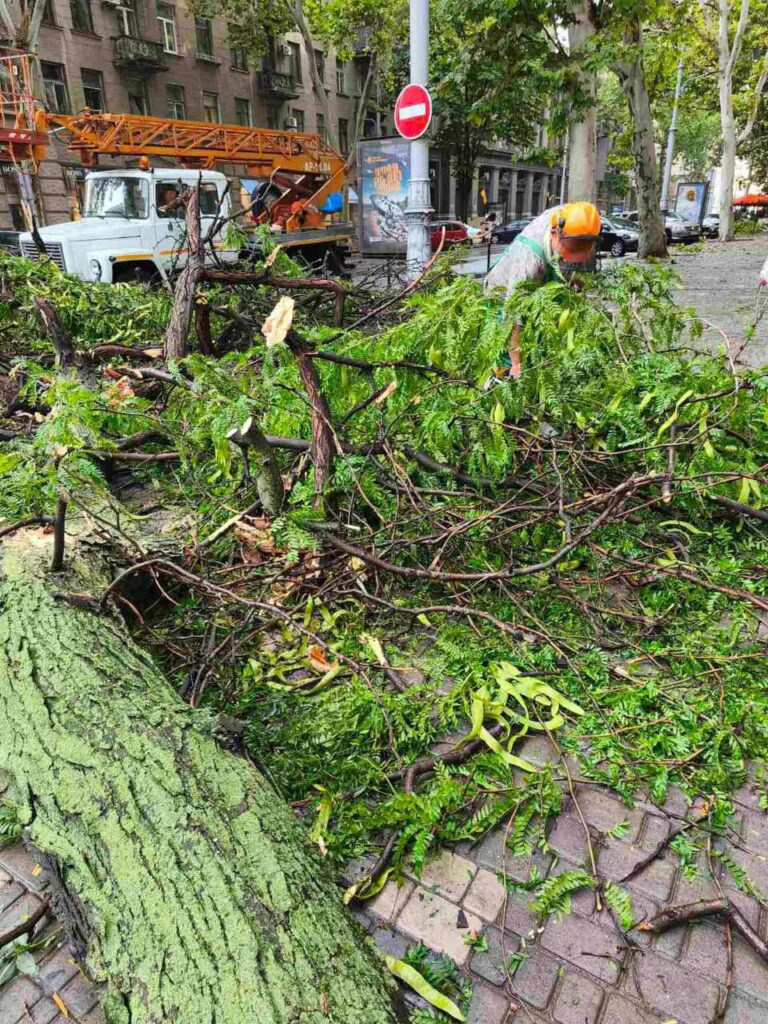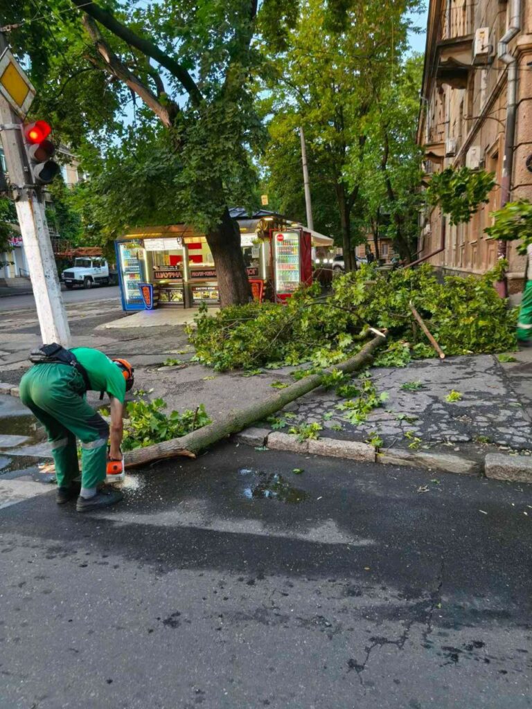 Штормовий вітер і сильний дощ повалили багато дерев та гілок у місті. Станом на 21-шу годину було відомо про падіння 31 дерева в Одесі , але інформація продовжувала надходити.