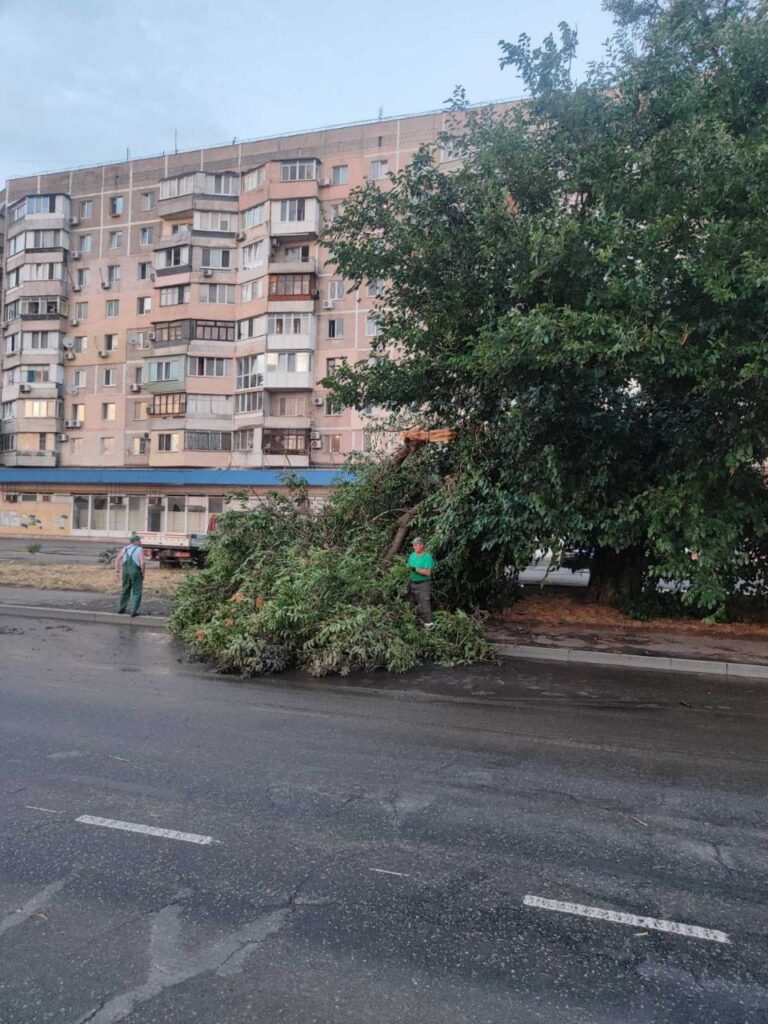 Озеленювачі разом з іншими комунальниками ліквідовували наслідки негоди. В першу чергу дерева та гілки прибирали з доріг аби звільнити проїзд.