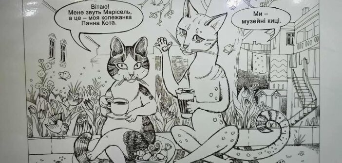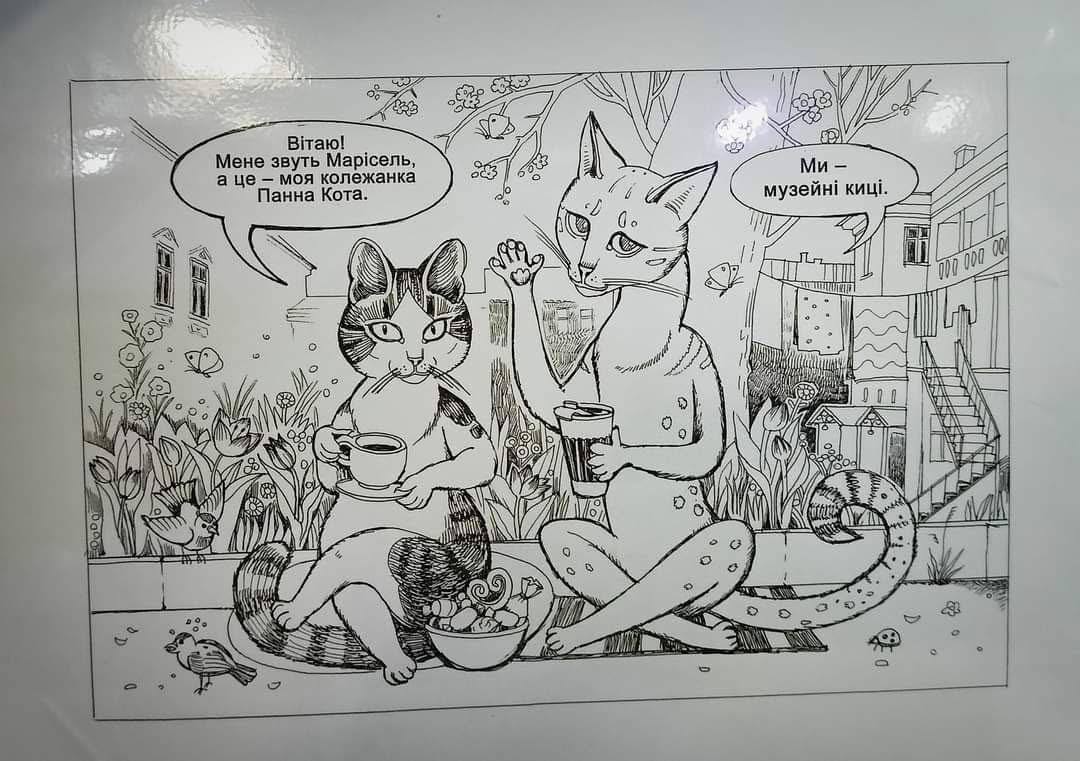 «Наші киці є голосом музейних працівників, які залишалися на своїх місцях, попри небезпеку. Це розповідь про страх і стійкість, про кохання, втрату і силу культури», — додає ілюстраторка новели, завідуюча виставковим відділом музею Марія Апрятова.