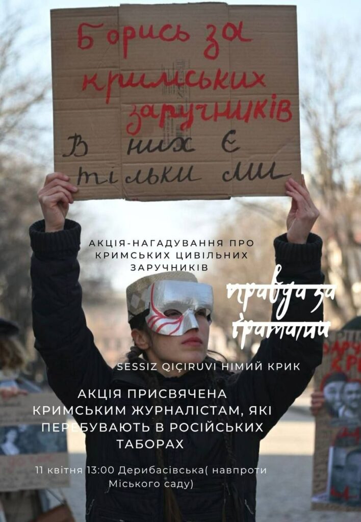 На завтра, 11 квітня, запланована акція-маніфестація “Sessiz qıçıruvı Німий Крик. Заґратована правда” – нагадування про кримських цивільних заручників рф.