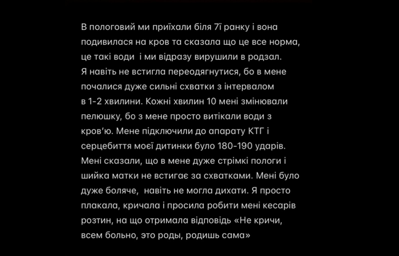 На своїй фейсбук-сторінці одеситка звинуватила працівників 5-го роддому у халатності та відмові робити кесарів розтин, що призвело до смерті дитини.