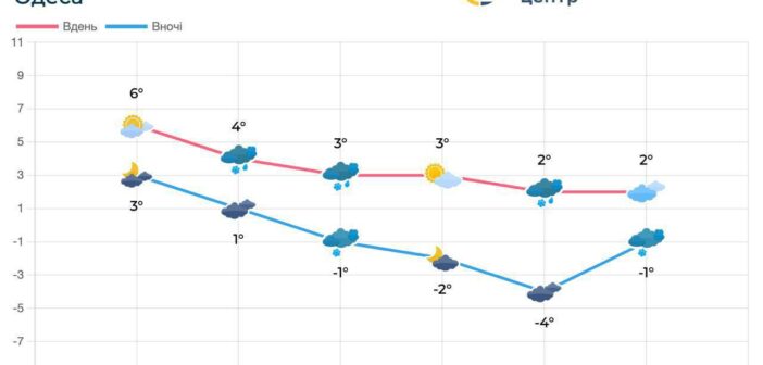Температурний фон поступово знижуватиметься.Подекуди можливі невеликі опади змішаної фази — дощ із мокрим снігом. Вітер переважно північно-східного напрямку, місцями поривчастий.