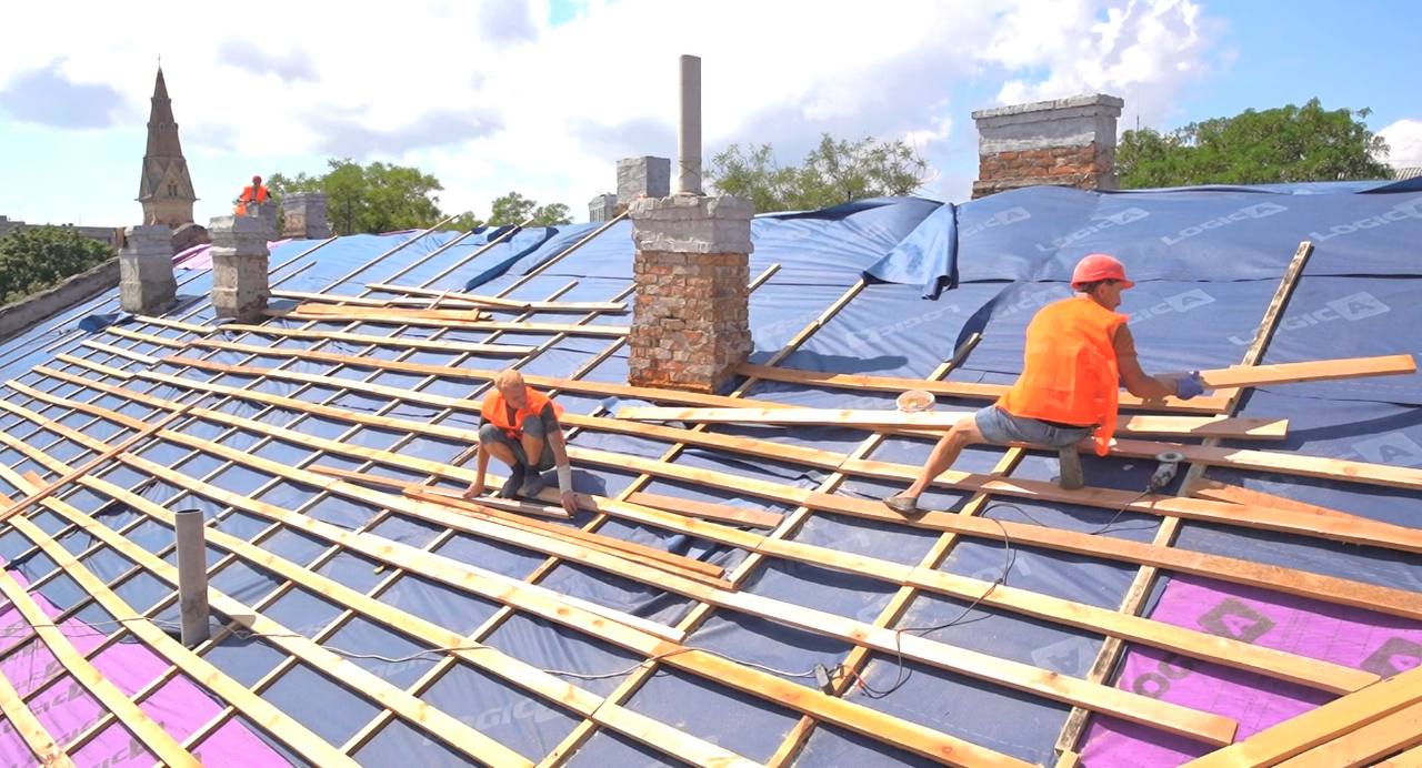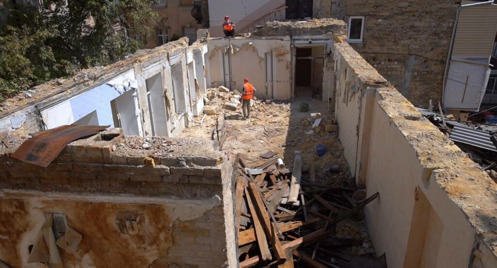 Наразі тривають протиаварійні роботи: демонтують аварійний флігель, зокрема несучі конструкції, перекриття та стіни, що потребують заміни. Також продовжується ремонт покрівлі, яка постраждала від вибухової хвилі — завершено роботи на лівому флігелі, триває перекриття даху фасадного крила.