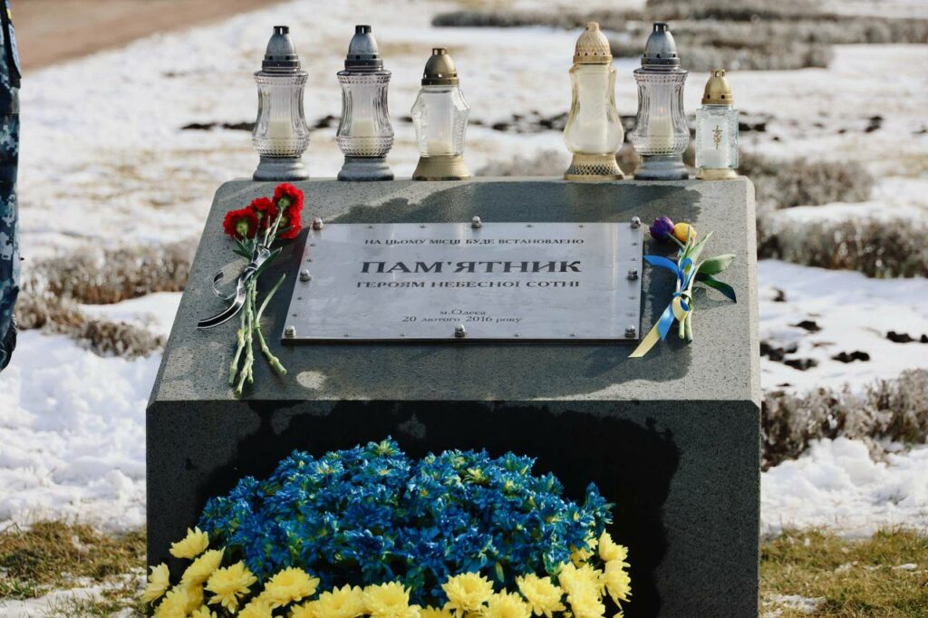 20 лютого біля будівлі Одеської обласної військової адміністрації на місці майбутнього пам’ятника Героям Небесної Сотні одесити схилили голови у хвилині мовчання, вшановуючи пам’ять тих, хто віддав життя за свободу та гідність України.