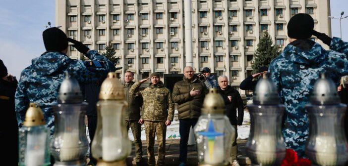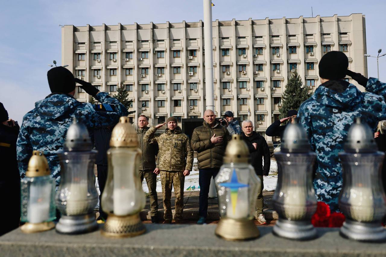 20 лютого біля будівлі Одеської обласної військової адміністрації на місці майбутнього пам’ятника Героям Небесної Сотні одесити схилили голови у хвилині мовчання, вшановуючи пам’ять тих, хто віддав життя за свободу та гідність України.