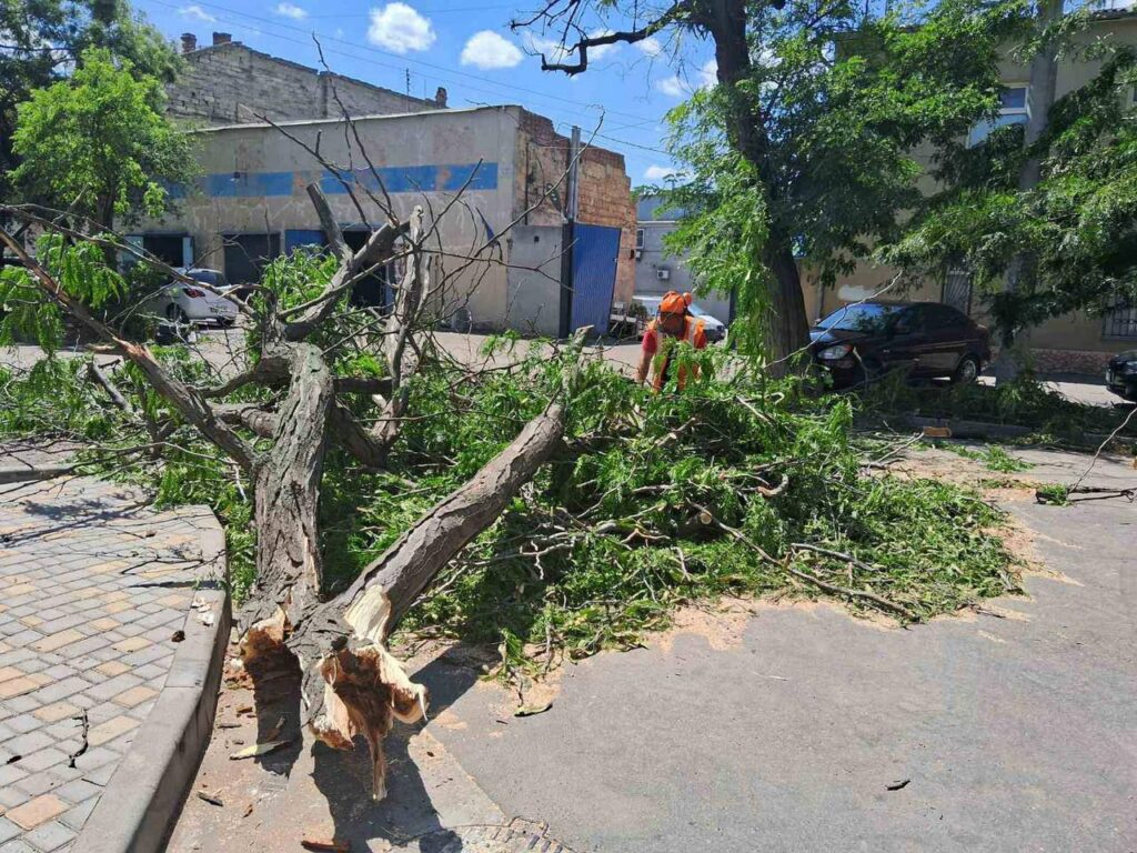 Всього внаслідок негоди вчора в Одесі було повалено 44 дерева та великих гілки. Залишилася лише одна адреса, де із-за припаркованих автівок неможливо провести роботи з прибирання дерева.