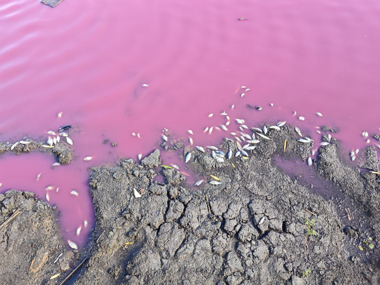 Для перевірки інформації та відповідного реагування рибоохоронці спільно з місцевою владою, представниками Держекоінспекції, Держпродспоживслужби та ДСНС оперативно прибули на місце події. Під час візуального огляду водного об’єкта рибпатрульними встановлено загибель молоді карася сріблястого. При цьому вода мала неприродний колір – яскраво-рожеве забарвлення.