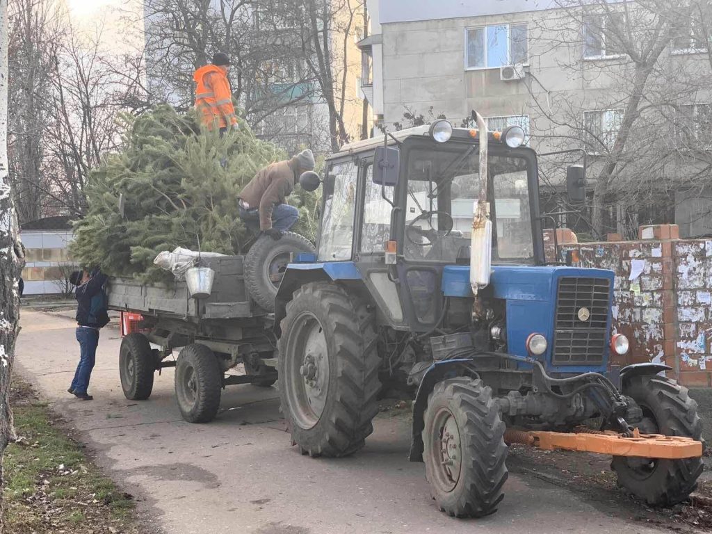 Брошенные недобросовестными продавцами ёлки коммунальщики вывозят на территорию КП “Горзелентрест” для дальнейшей переработки. В работах задействовано 9 единиц техники КП “Городские дороги”.