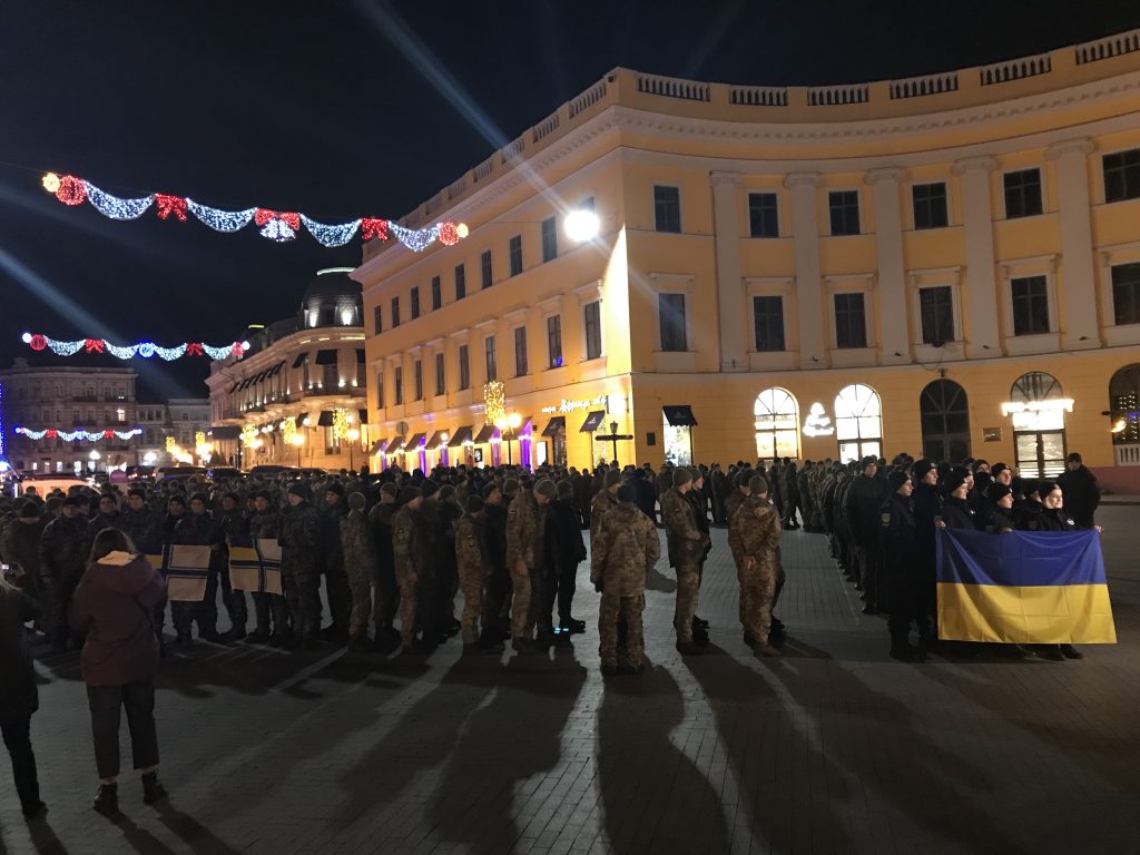 Одесса сегодня присоединилась к празднованию Дня соборности. Около 19:00 на Приморском бульваре люди начали выстраиваться в цепь единства, а курсанты военных и правоохранительных учебных заведений создали живое сердце.