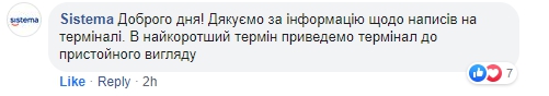Терминал расположен около магазина на улице Святослава Рихтера 126/128 в Одессе. Компания, обслуживающая терминал, пообещала, что надпись будет удалена в ближайшее время.
