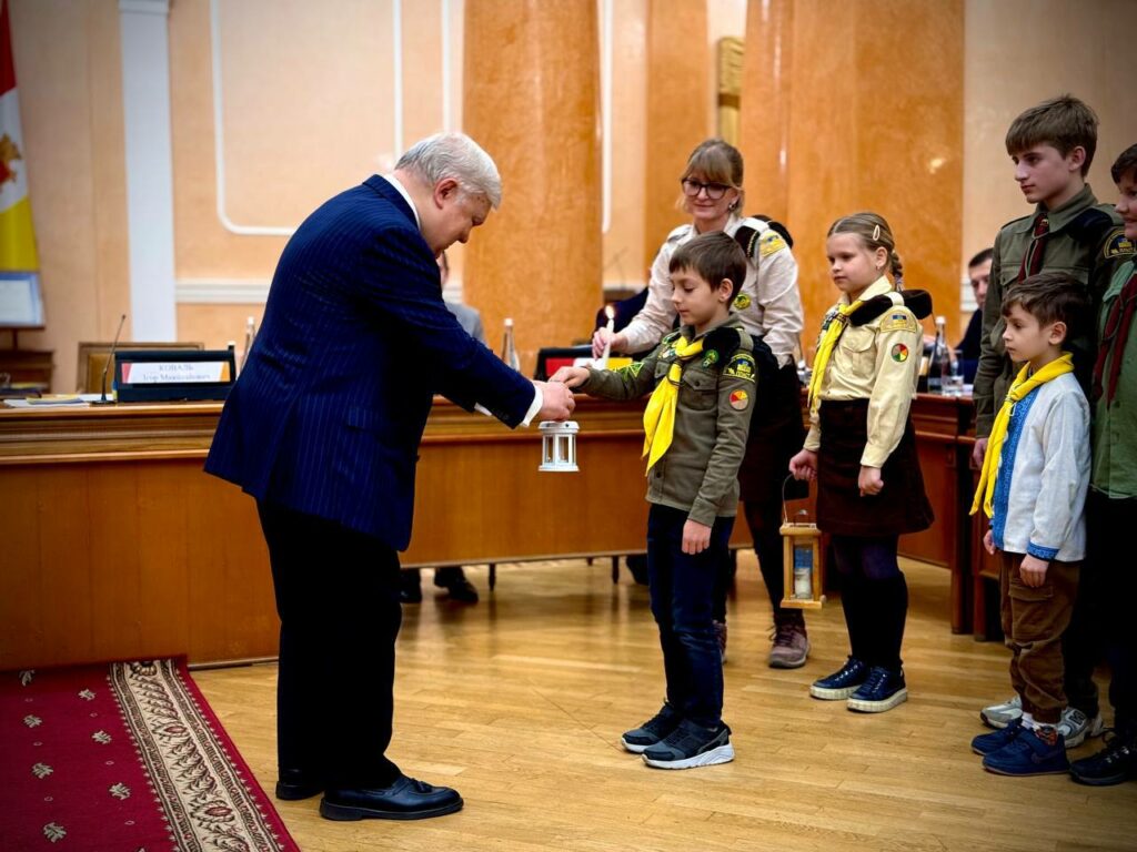 Сьогодні під час засідання сесії Одеської міської ради Національна скаутська організація України «Пласт» передала вогонь територіальній громаді міста Одеси. Маленькі пластуни привітали громаду з різдвяними і новорічними святами виконанням пісні «Вифлеємський Вогонь миру».