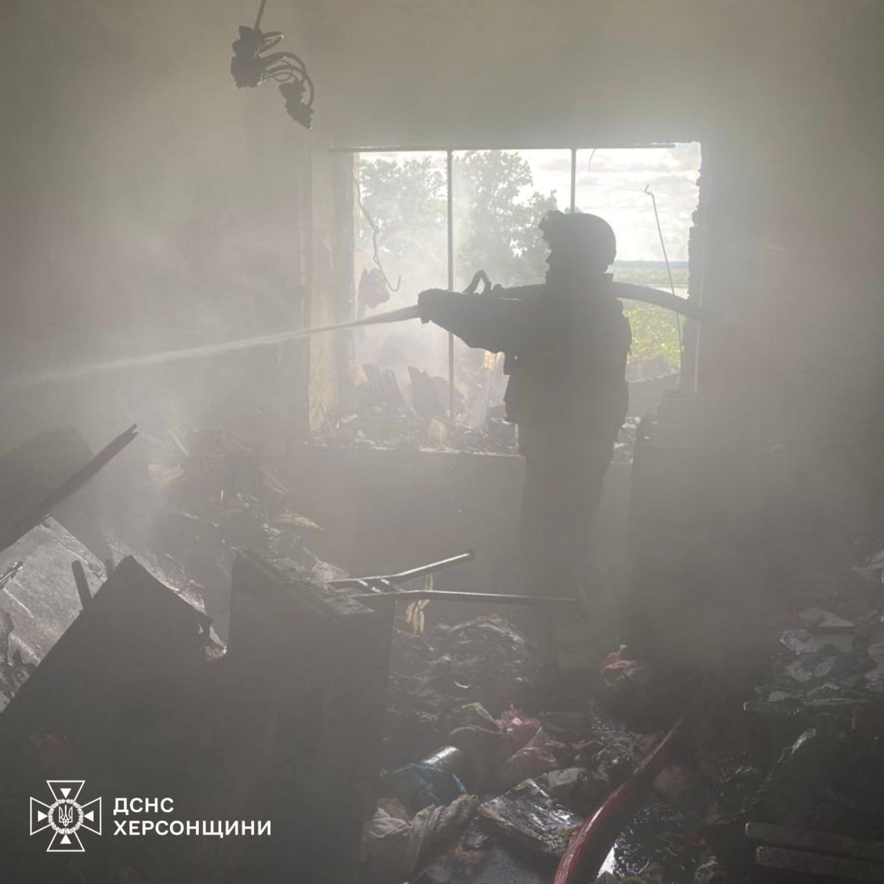Сьогодні вдень ворожий боєприпас влучив у багатоповерхівку в одному з районів Херсона. У квартирі на третьому поверсі виникла пожежа.