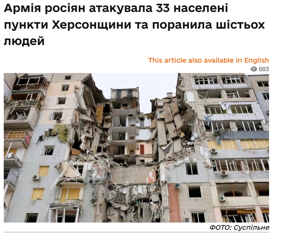 Утім медіа не згадує про удари по інших регіонах, за винятком загального квітневого звіту Моніторингової місії ООН. Загалом за 19 днів аналізу новин, в стрічці опублікували 14 матеріалів про прильоти, 13 з них про Одесу чи Одещину.