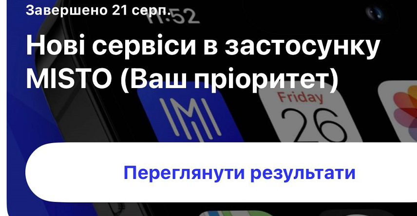 З 6 по 21 серпня тривало опитування: «Які нові цифрові сервіси ви бажаєте бачити в застосунку MISTO? (Ваш пріоритет)». Результати опитування :
