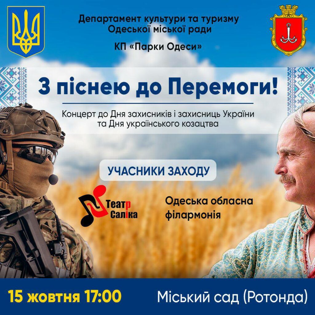 Шановні одесити та гості нашого міста. Запрошуємо Вас на відкриття військово- патріотичної акції «З піснею до Перемоги», запропонованої КП «Парки Одеси» за підтримки Департаменту культури та туризму Одеської міської ради.