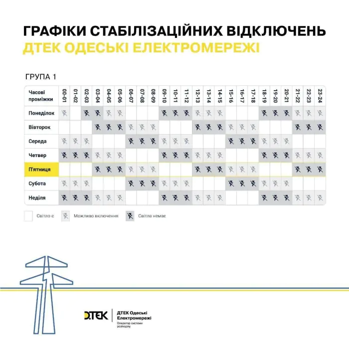 На сайті ДТЕК Одеські електромережі також було опубліковано графіки відключень. У компанії зазначили, енергетики вже працюють, щоб повернути світло в оселі українців.