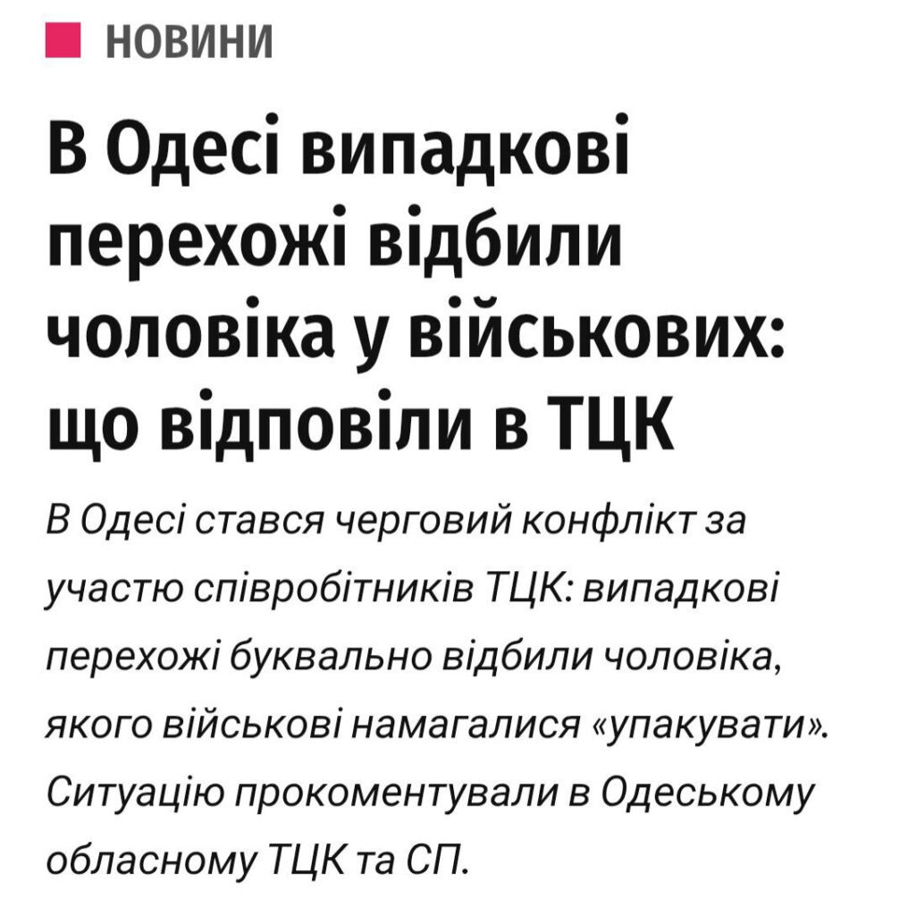 Одеські регіональні медіа не постили відвертих фейків, однак вдавались до маніпуляцій, для привернення читацької уваги. Такою є новина «В Одесі випадкові перехожі відбили чоловіка у військових: що відповіли в ТЦК». У тексті подано інцидент як «перехожі відбили», що формує образ конфлікту цивільних і військових. Неперевірена хронологія подій і джерела (відео, поліція, очевидці). Мова новини робить акцент на одній стороні конфлікту, підсилюючи поляризацію і не даючи рівнозначно висвітлити подію.