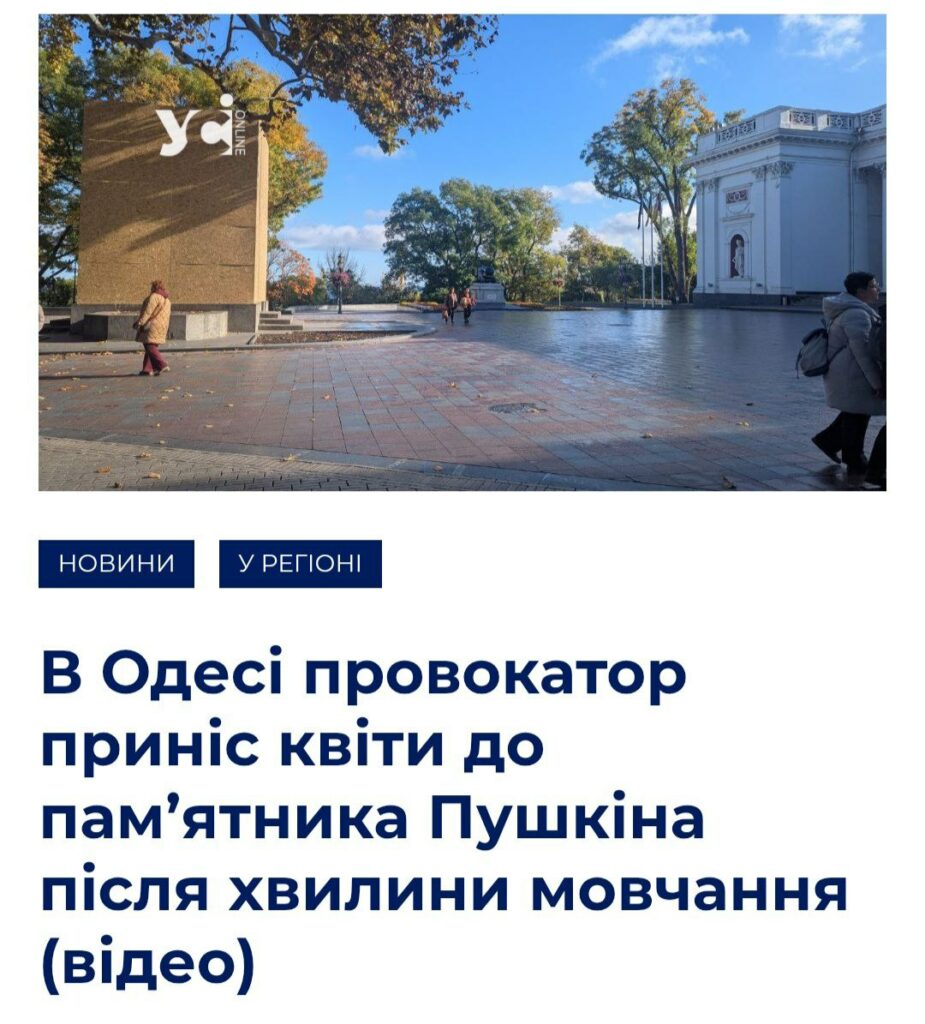 В новині «В Одесі провокатор приніс квіти до пам’ятника Пушкіну, після хвилини мовчання (відео)» заголовок вже називає людину «провокатором» до того, як з’ясовано намір. Створюється ярлик для передбачення наміру персонажа новини й підготовка до негативного ставлення. В матеріалі відсутні підтвердження намірів суб’єкта (інтерв’ю, пояснення, судова кваліфікація). Також у першоджерелі новини зустрічаються слова «квіти в смітнику, а вата отримала по голові», що є саме по собі агресивною лексикою, спрямованою на роздмухування конфліктів.