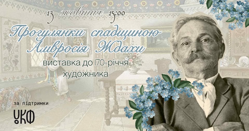 До 170-річчя відомого митця з півдня України учасники проєкту «Українські обрії Амвросія Ждахи» запрошують на відкриття виставки «Мистецтво проти зросійщення: Амвросій Ждаха в Одесі». Проєкт реалізується за підтримки Українського культурного фонду. Початок о 15.00, локація – обласна бібліотека імені Грушевського.